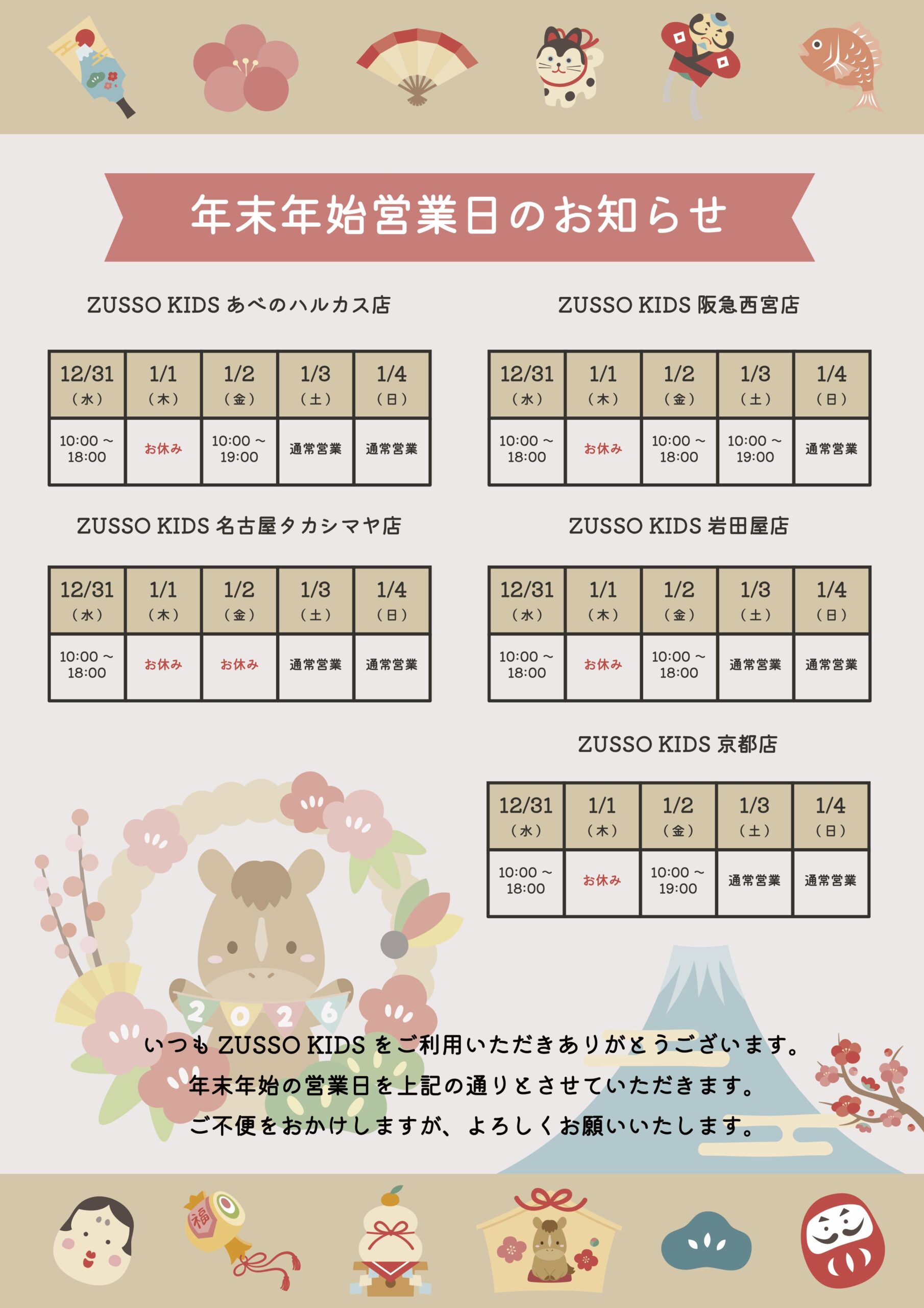あべの店お知らせ